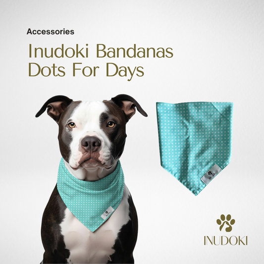 Regular price From $15.00Regular priceUnit price / perSale price From $15.00Add playful style to your petâs wardrobe with Inudoki Bandanas - Dots For Days Series. Priced at $15, these lightweight bandanas feature charming polka dot patterns perfect for dogs and cats. Customize your petâs look further with personalized name embroidery for $5 or add fun doggy cartoons or designs for an extra $10. Made from durable, comfortable materials, these bandanas are ideal for daily wear...01. Polka Bliss - Mint02. Dotted Daydream - Aqua