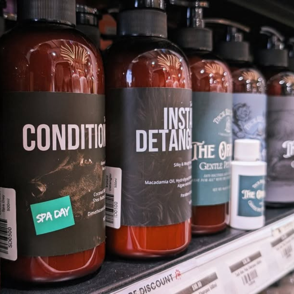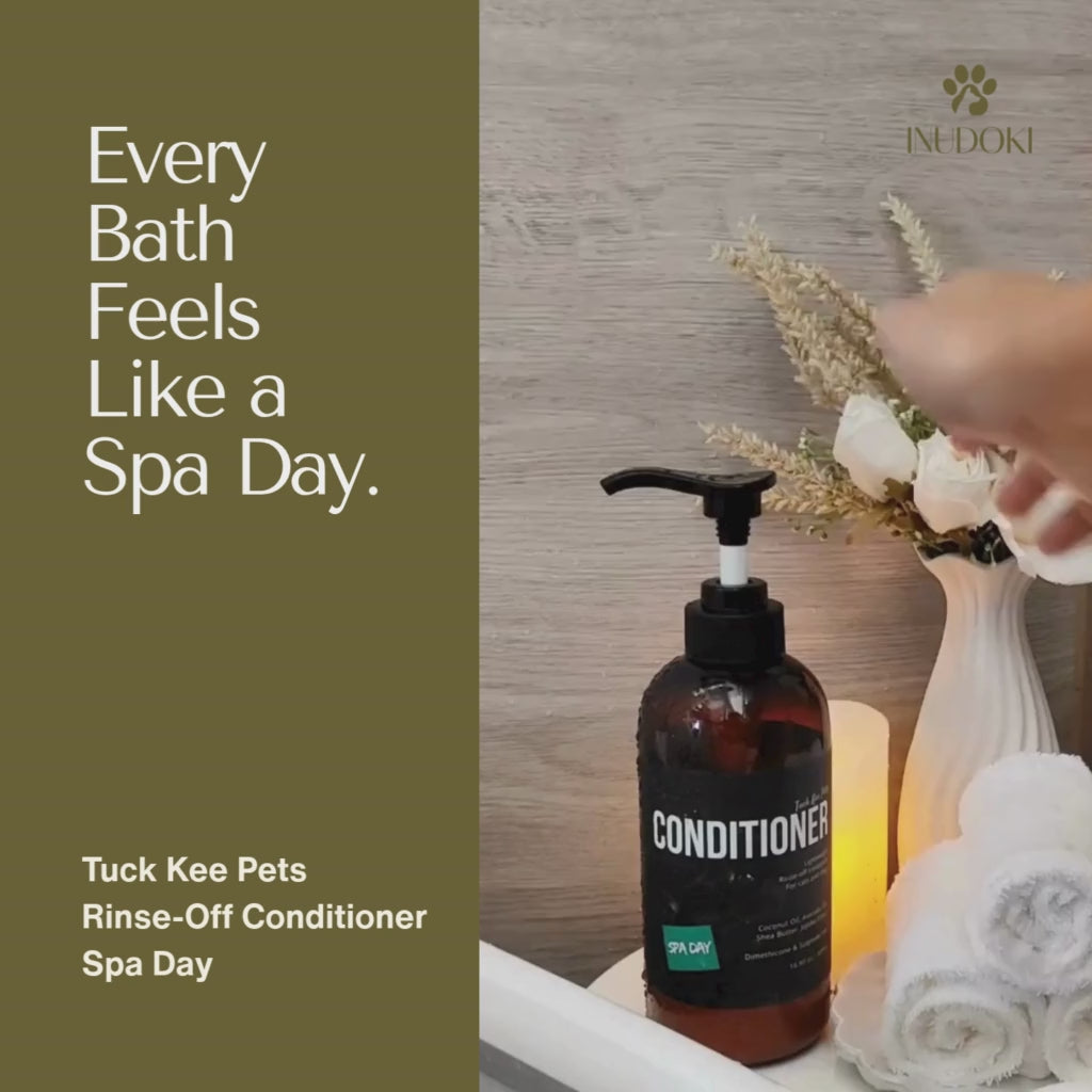 A lightweight rinse-off treatment for cats and dogs, designed to restore shine, softness, and manageability to every coat. The Spa Day scent is a reflective signature fragrance, evocative of resort life in the tropics.