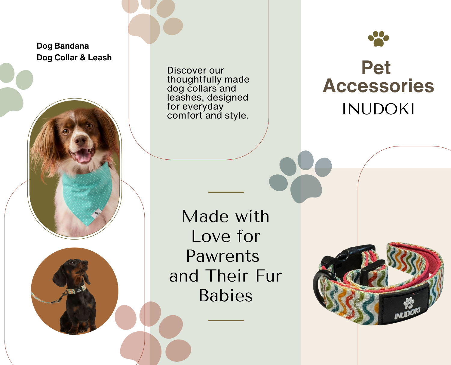 Explore Inudoki’s collection of dog collars and leashes, thoughtfully designed for comfort, safety, and everyday adventures. Add a personal touch with our custom bandanas, beautifully embroidered with your fur baby’s name or a special design that’s uniquely theirs. Because every walk, every cuddle, and every moment together deserves something made with care.