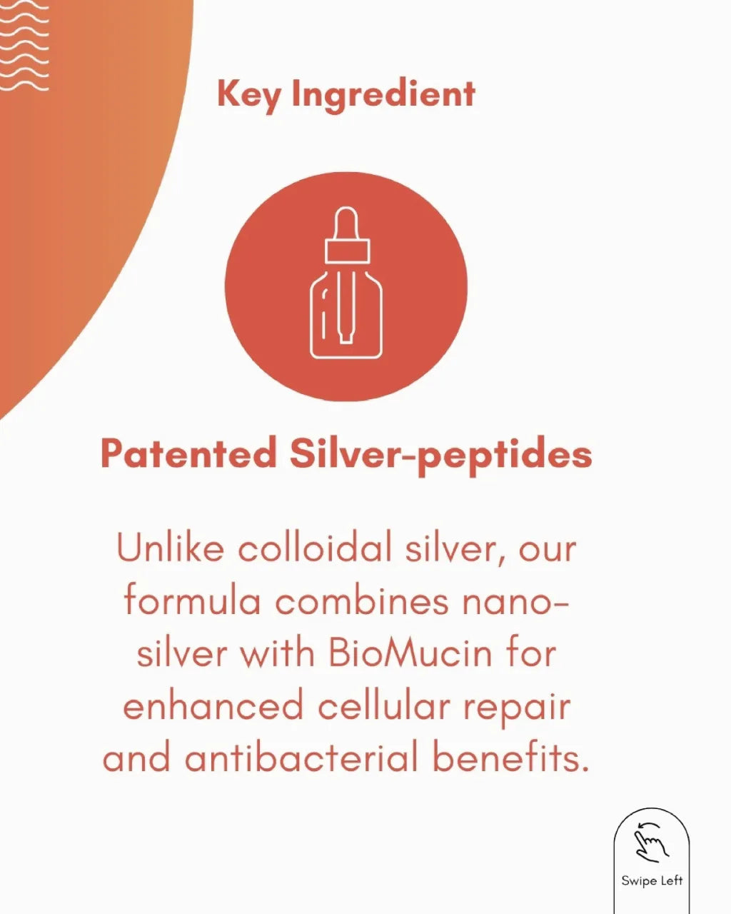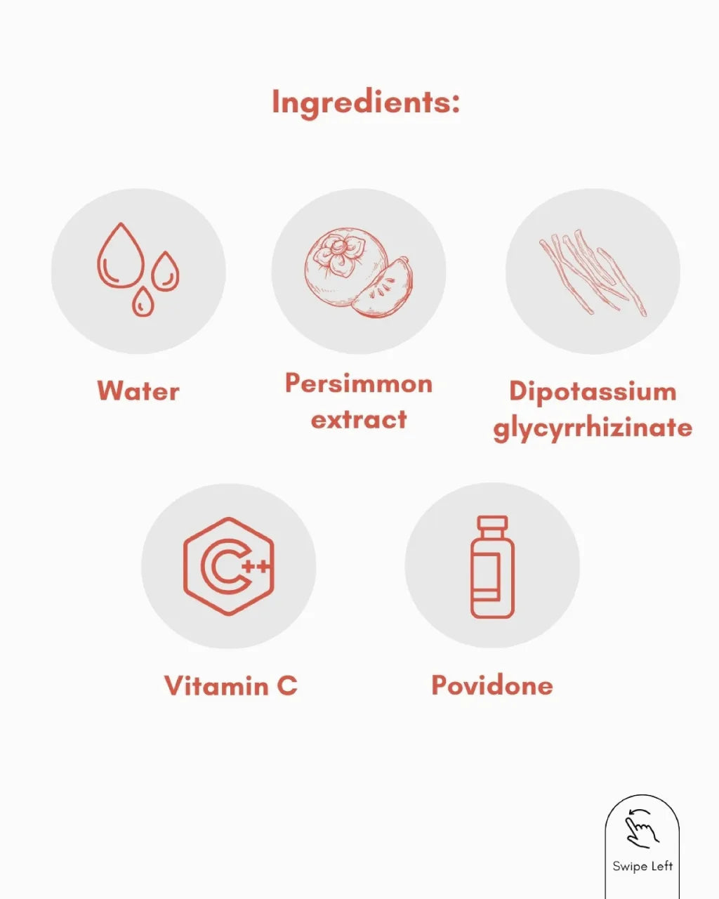 Water, Silver-Peptide, Persimmon Extract, Dipotassium Glycyrrhizinate, Vitamin C, Povidone